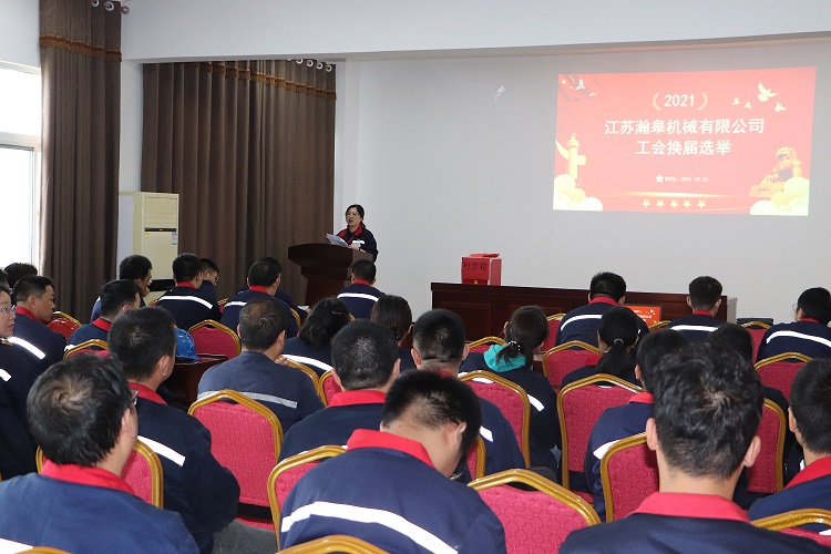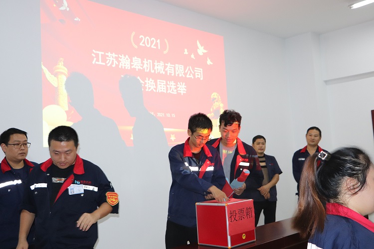 2021年10月15日江苏瀚皋机械有限公司第二届工会第一次会员代表大圆满落幕,李陈华同志当选为工会第二届委员会主席,吴广圣、何晓银、高义峰3位同志当选工会委员会副主席,朱广英、朱海龙、冒荣荣3位同志当选为委员。