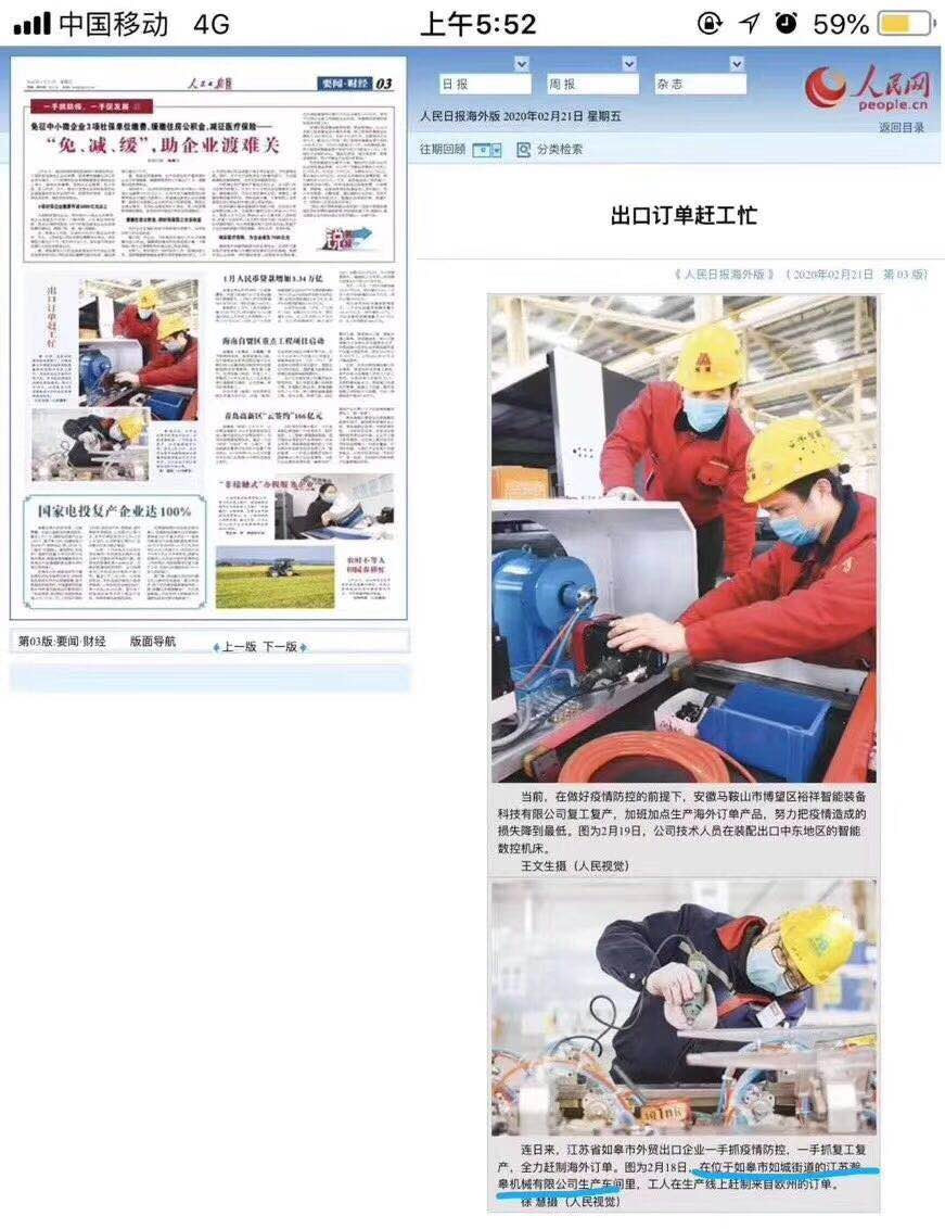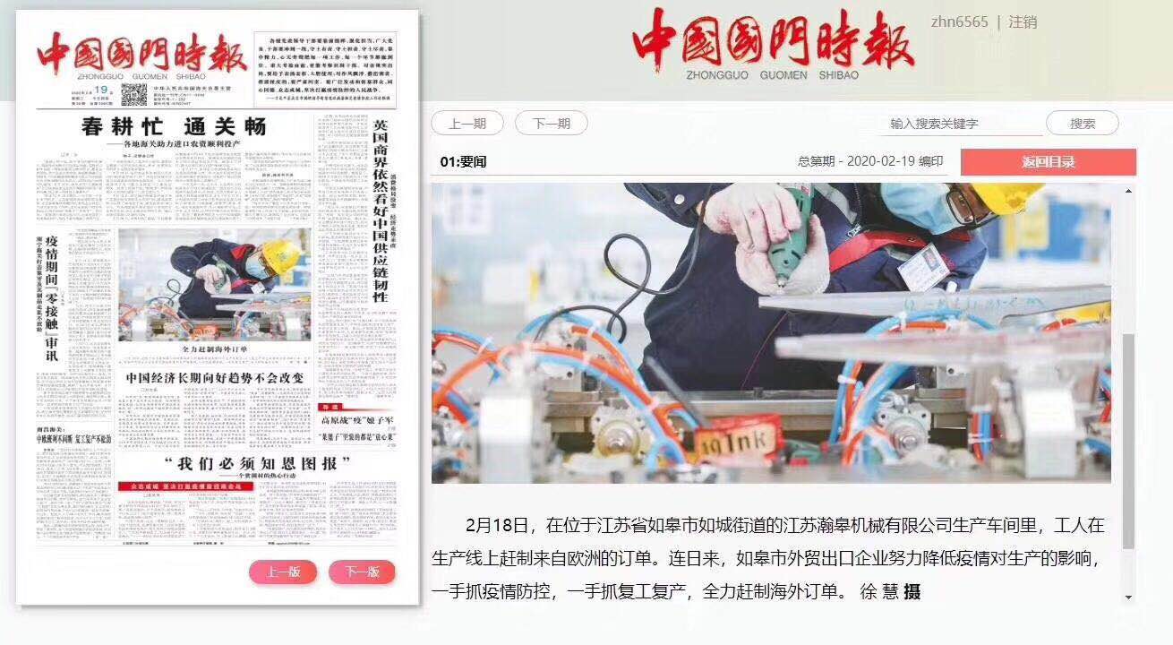 我公司自复工以来严格按照相关规定执行,以员工卫生安全为第一要素,有序、有效开展相关工作,一手抓疫情防控,一手抓复工复产,确保防疫、生产两不误,公司荣登中国国门时报、人民日报。
